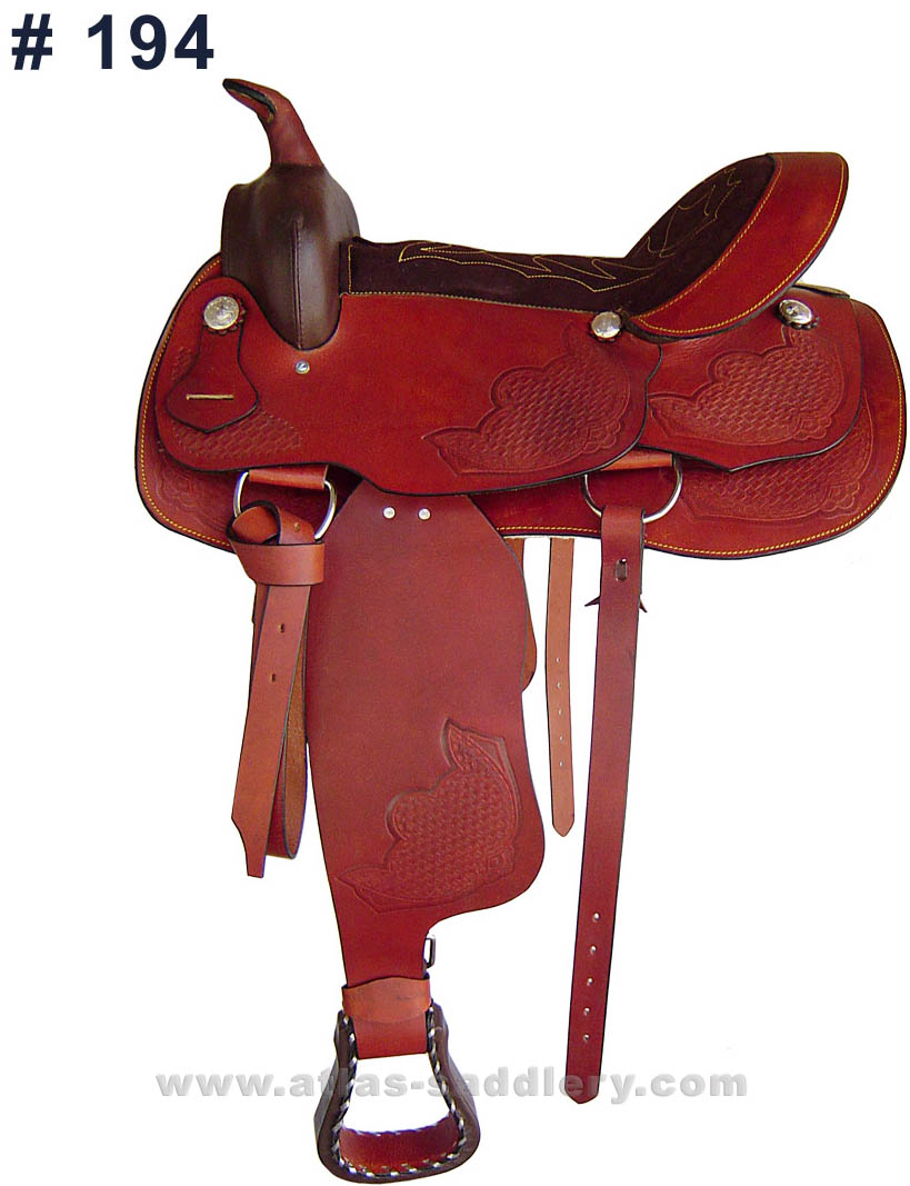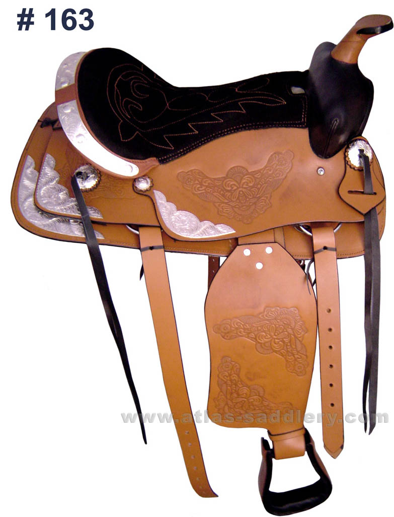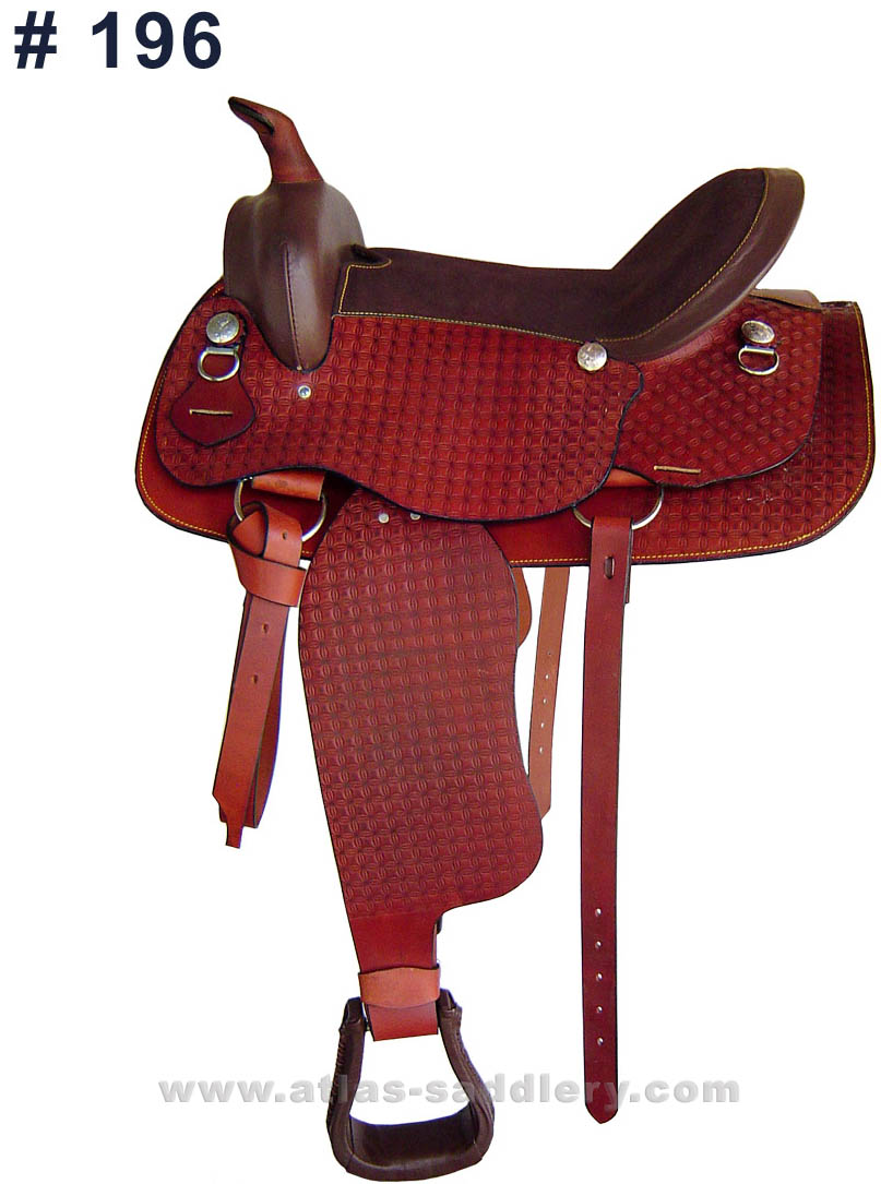 Western Saddle with Fibre Tree Embossed Leather with suede leather on Seat